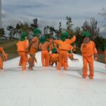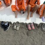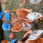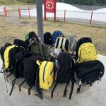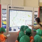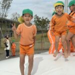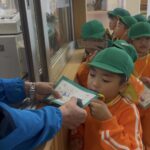 5歳児は電車の旅。改札口では手作り切符にスタンプを押して頂きました。ちょっと緊張気味の園児たちでした。「霧島スポーツランド都城」では広いグランドとふわふわ遊具に大喜び。靴もカバンもきれいに整頓されています!「みてみて~!」とおいしそうなお弁当を披露してくれました☆