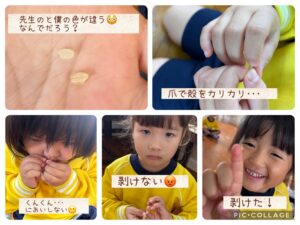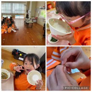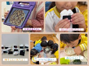 年中さんのねらい「お米はどのようにできるのか知る」「食材に触れ、味わうことで食事への関心を高める」