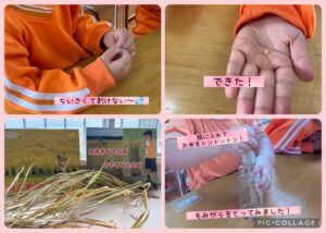 年長さんのねらい「お米ができるまでの過程を知り、感謝の気持ちを育む」