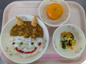 給食の「鬼さんカレー」もペロリとたいらげました!