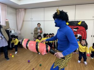 「鬼は~外!福は~内」思いを込めてボールを投げていると…