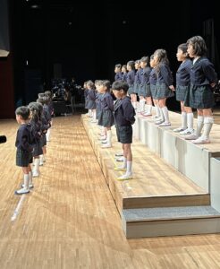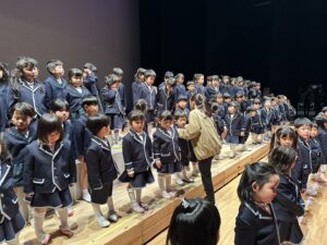 大きな舞台に立ち、一人で堂々と発表する姿。きれいに整列する姿。大きな口を開け、真剣に歌う姿。動きひとつとっても、「さすが年長さん」という思いと、これまでの成長の様子が走馬灯のように浮かび、舞台袖でみている職員の感慨もひとしおでした。