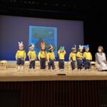 なりたい動物を選んで、それぞれの動物のお面を制作しての登場です。言葉のかけあいもタイミングもばっちりでした。舞台袖では、ドキドキしながらも早く舞台に立ちたい空組でした。